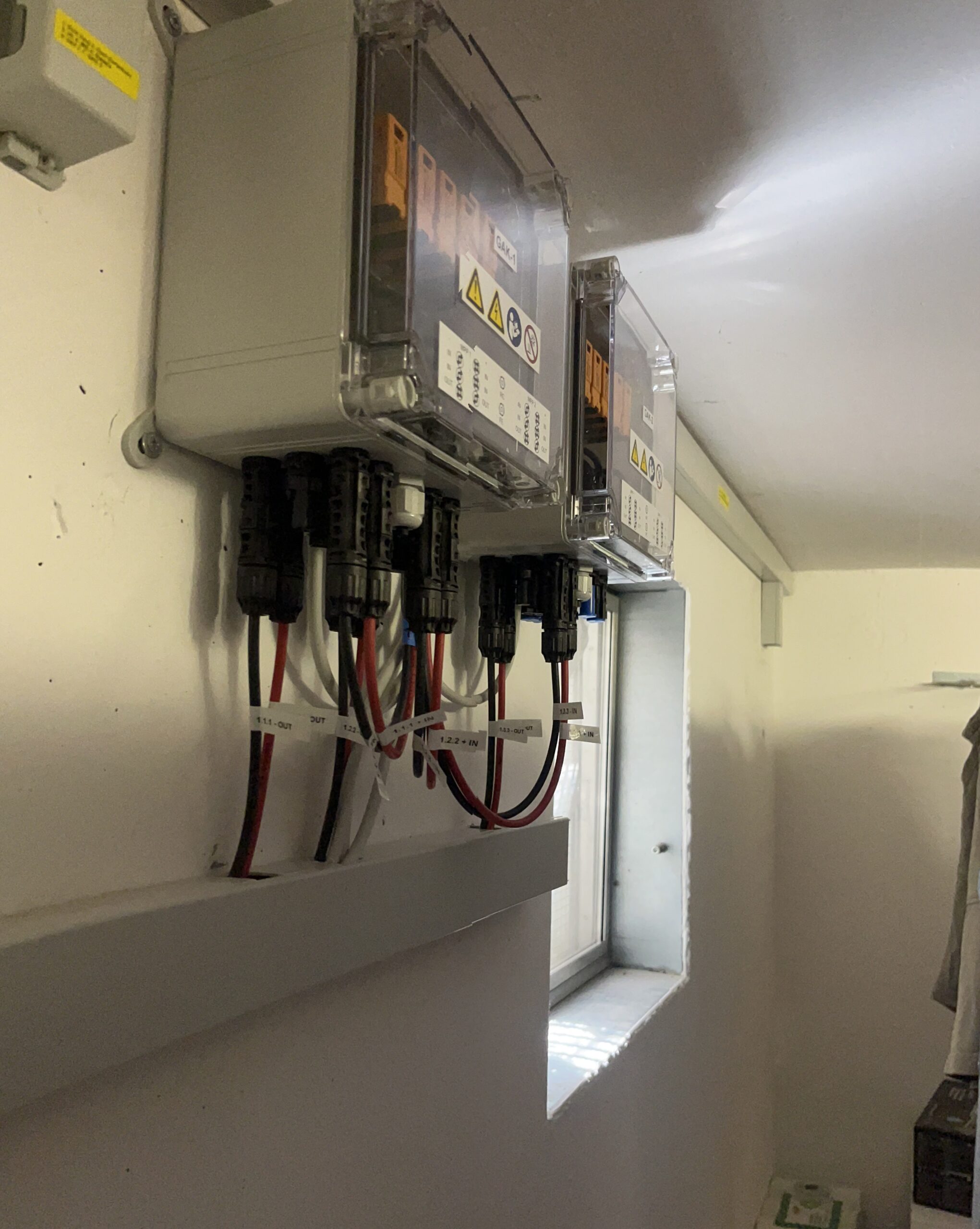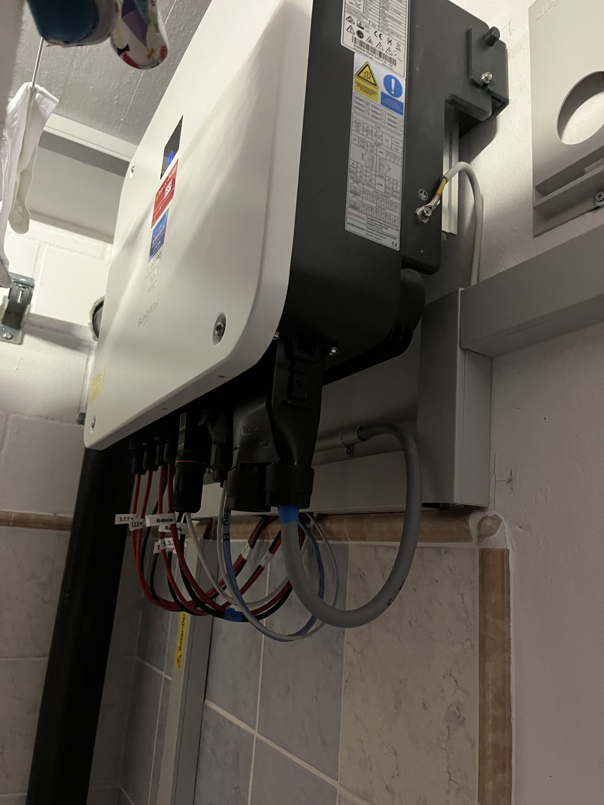 Im Technikraum wurden zwei Überspannungsschutzkästen, ein 15 kW Wechselrichter und ein 15 kWh Speicher verbaut.