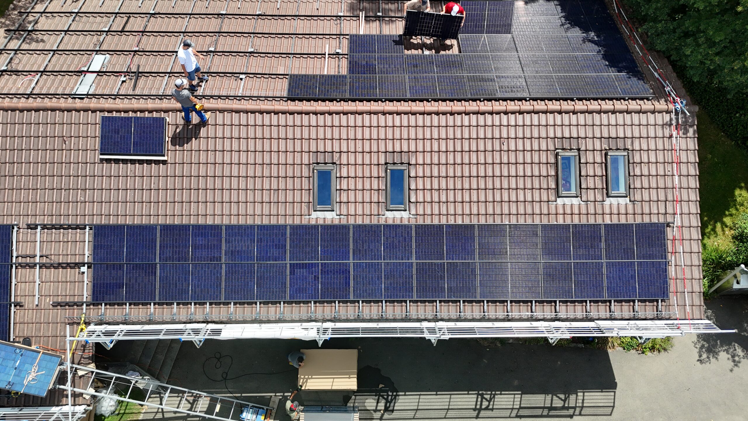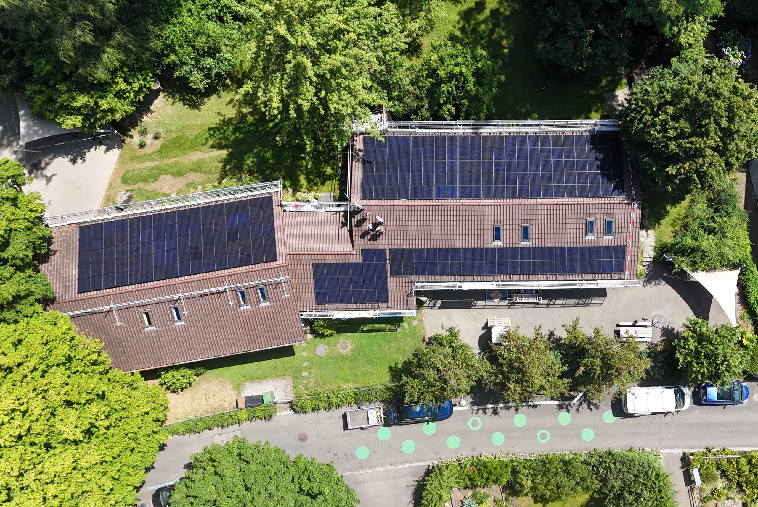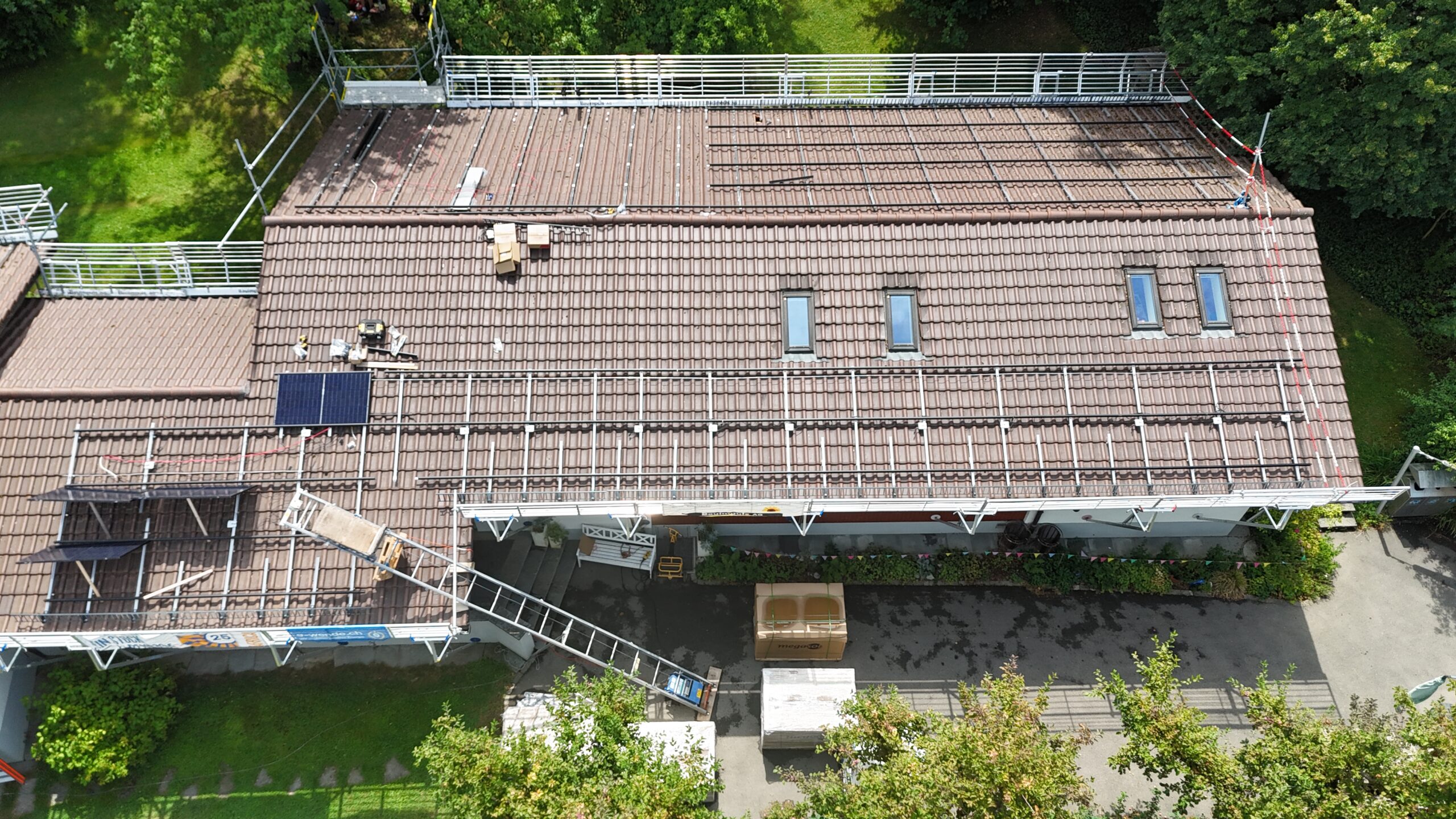 Zusammen mit Solarify realisiert die EWG schon seit mehreren Jahren Projekte, um die Energiewende voranzutreiben. Bei dieser PV-Anlage auf einem Kindergartendach übernahm die EWG die Projekt- und Bauleitung. Die Dachnutzung hat Solarify geklärt. Montiert wurde die 43 kWp-Anlage in Bern unter Mithilfe von unseren Selbstbauenden.